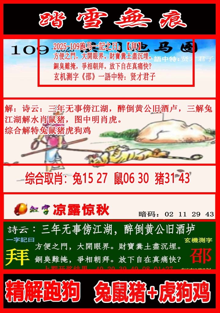 110期:⑨肖 蛇猴鸡狗马龙兔虎鼠 开??准